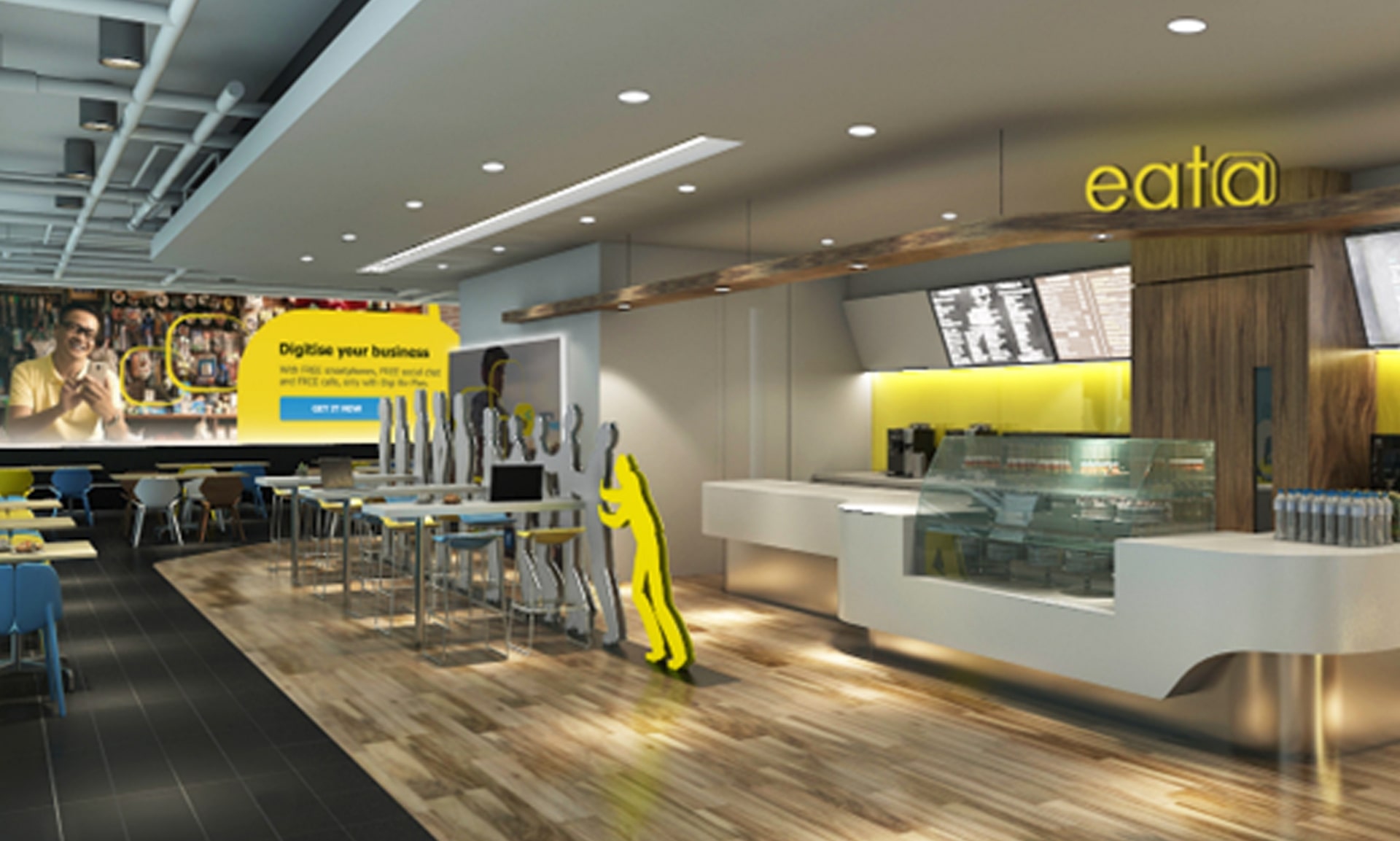 Our design placed yellow as the focal point in various spaces, emphasising the brand’s logo colours to staff and visitors alike.