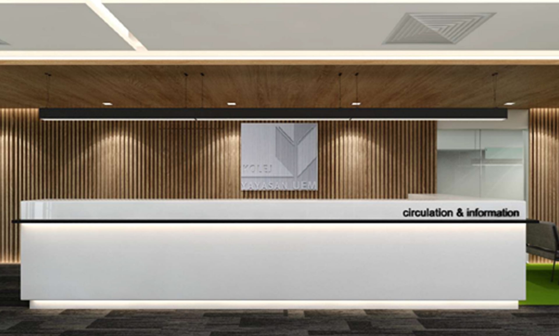 Our work for Kolej Yayasan UEM focused on an interior that is modern, striking and able to help students get into a better mood for productivity with splashes of colour to liven up the spaces.