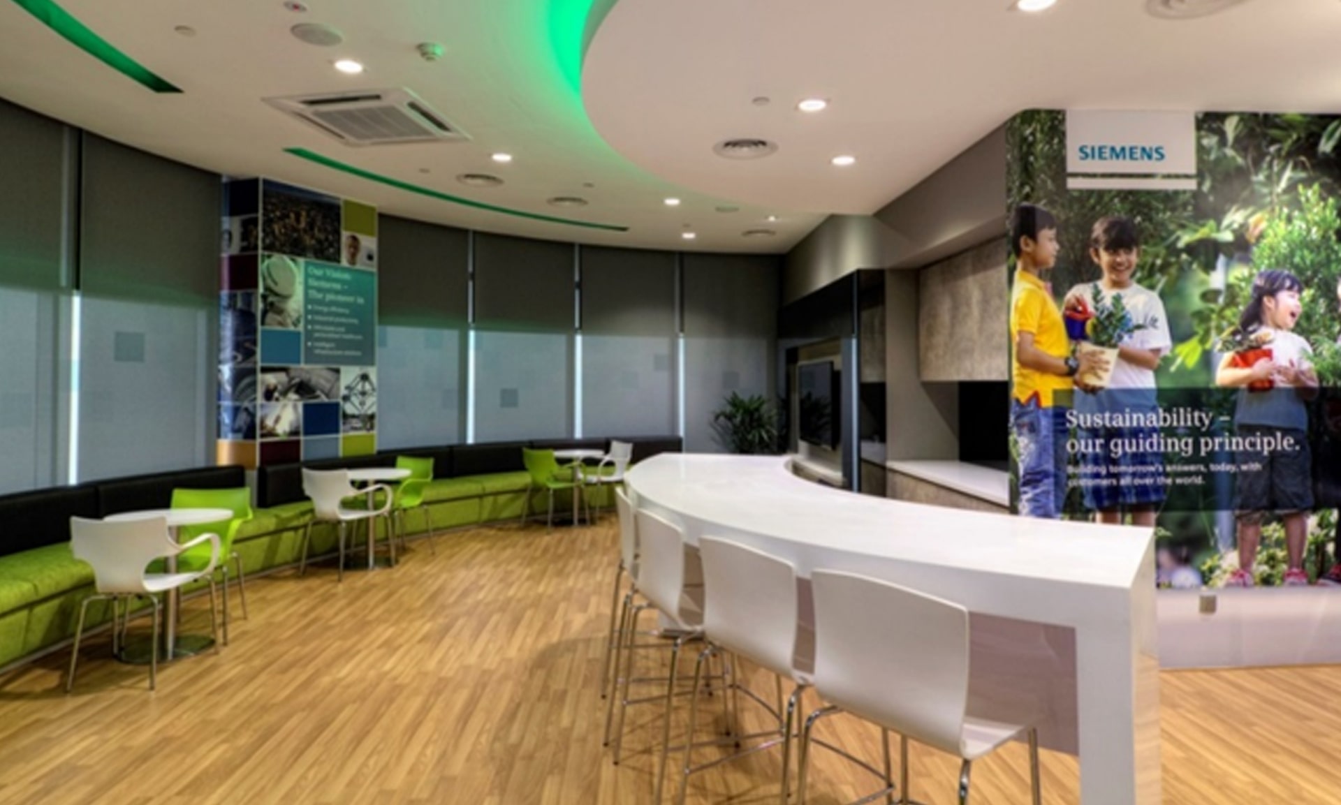 At Siemens Malaysia, we focused on keeping the space modern and contrasty with a splash of colour to keep things from looking too serious.